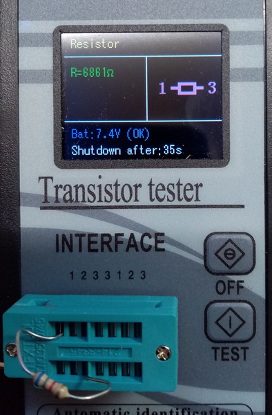 Einmal überraschte mich der Bauteile-Tester mit der linken Anzeige! Der Testwiderstand steckte aber in den Anschlüssen drin!