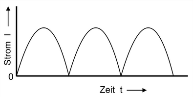 Beim pulsierenden Gleichstrom ändert sich bei gleich bleibender Elektronenrichtung immer die Stromstärke.
