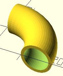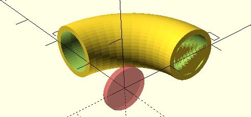 Dies bedeutet, von einem großen massiven Viertel-Ring wird ein selbiger mit einem kleineren Durchmesser abgezogen. Dadurch entsteht ein Rohr. Ob das Gebogen, wie in unserem Fall, oder gerade ist, spielt überhaupt keine Rolle: es wird abgezogen.