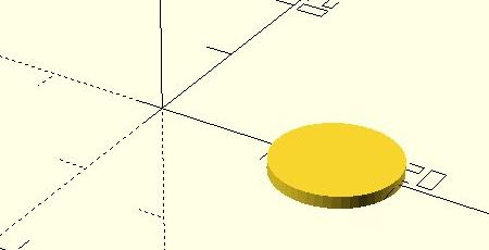Danach wird der Kreis mit translate([15, 0, 0]) in seine eigentliche Position auf der X-Achse verschoben: 15.