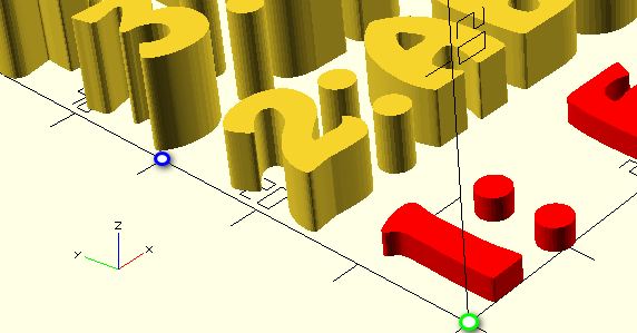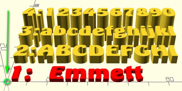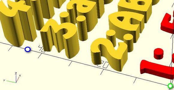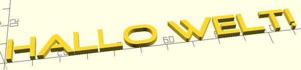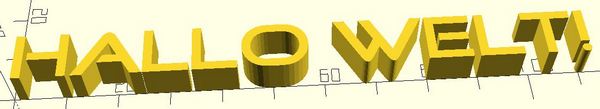 OpenSCAD arbeitet auch mit Variablen. Dadurch kann es vereinfacht werden, die Schrift schnell zu ändern.
