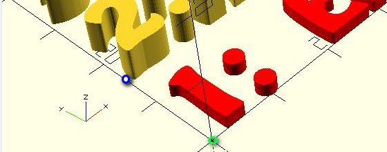 translate([0,30,0]) verschiebt den Text nach x=0, y=30 und z=0. Die Angabe "30" für die y-Verschiebung vom Nullpunkt aus, bewirkt zwei Zeilen nach oben.