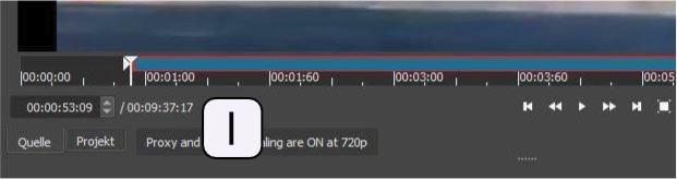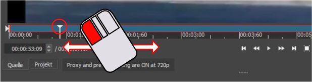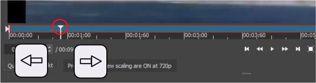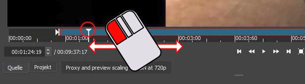 Durch Ziehen des Zeitcursors am oberen Dreieck mit der Maus kann ohne Mühe die zu schneidende Position sehr schnell grob angefahren werden.