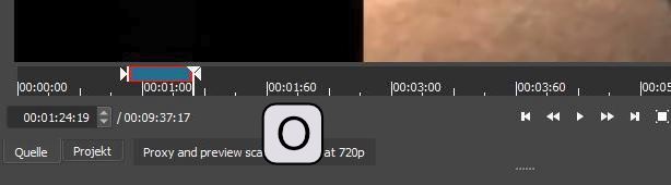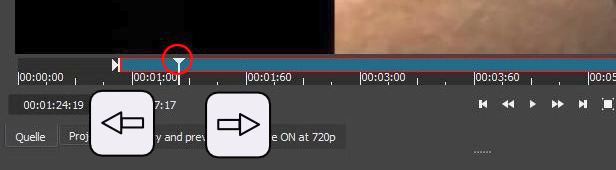 Mittels den Cursor-Tasten ⇐ und ⇒ kann die Schnittstelle ganz genau Bild für Bild eingestellt werden.