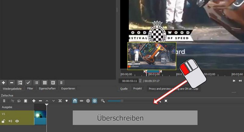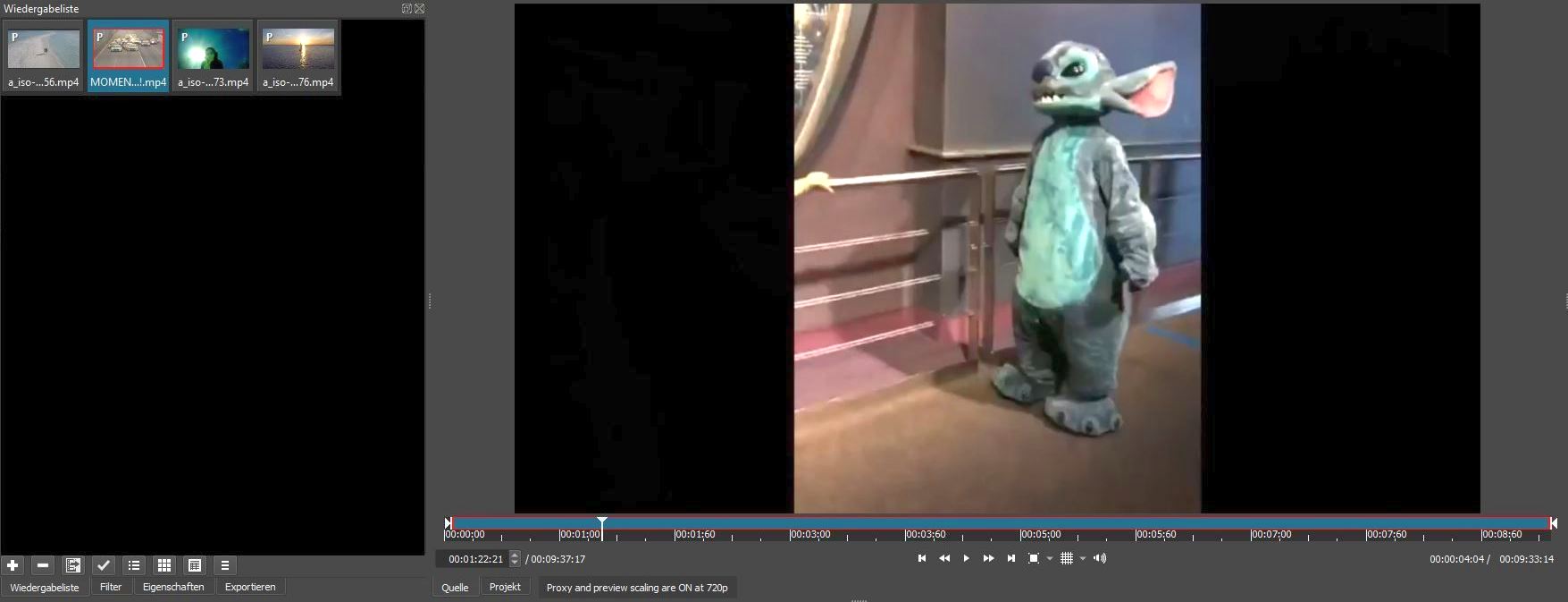 Nun kann der Ausschnitt des Filmes entweder zur weiteren Verwendung in die Wiedergabeliste abgelegt werden oder gleich mit der Maus in die Zeitachse gezogen werden.