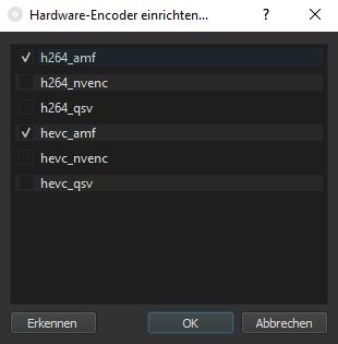 für MP4 ist "h264_amf" und "hevc_amf" die richtige Wahl. Oder einmal auf "Erkennen" klicken .....