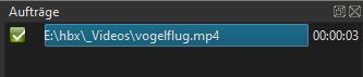 Im Fenster "Aufträge" kann über einen Fortschrittsbalken und Prozentangaben das Rendern und Abspeichern verfolgt werden. Nach Fertigstellung sieht es dann wie im Bild aus.