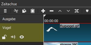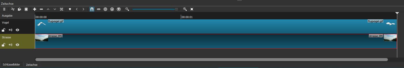 Die untere Spur beinhaltet das Bild mit der Straße, die obere Spur die Animation des weißen Vogels im Flug. Mit den gleichen Namen habe ich auch die Spuren umbenannt: einfach draufklicken und ändern!