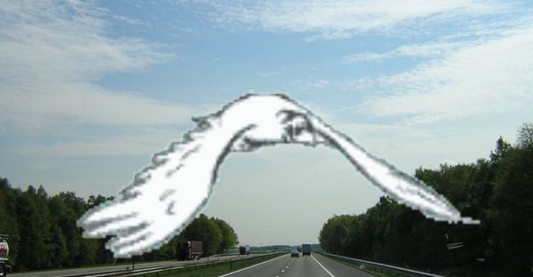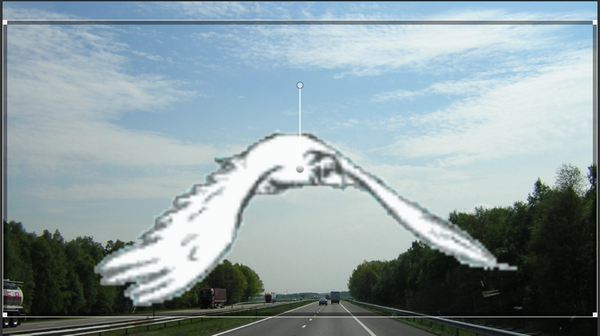 Nun sind wir wieder bei meinem "Vogelflug" gelandet: als Hintergrund habe ich ein Bild einer Straße gewählt, über die ein weißer Vogel fliegen soll. Je weiter er fliegt, desto kleiner soll er werden um die Entfernung zu simulieren.