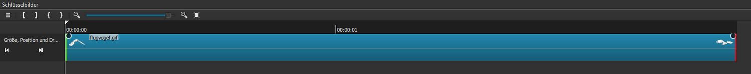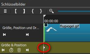 Schlüsselbilder - was ist das? Dies sind kleine Markierungen, die im Film einen Ablauf steuern können. Unser Vogel fliegt dadurch von links (Markierung 1) nach rechts (Markierung 2) - und schwebt nicht nur an einer Stelle.