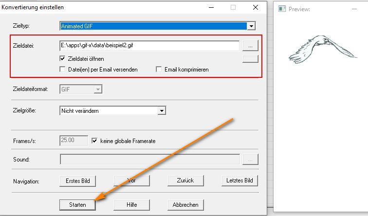 Unter Zieldatei den neuen Namen der Datei angeben und noch auf Starten klicken. Das war es dann auch schon!