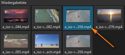 Der Film, der sich im Abspielfenster befindet, wird in die Wiedergabeliste mit Vorschaubild eingefügt.