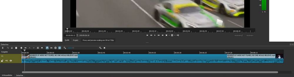 Auf der Zeitachse ist auch ein Zeitcursor vorhanden, der immer paralell zu dem im Abspielfenster läuft.